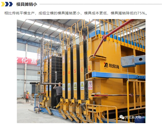 成組立模即將若干模板豎直放置,通過立式模板的移動形成若干空腔,經(jīng)澆筑、振搗、養(yǎng)護成型的預制混凝土構件生產(chǎn)裝備。